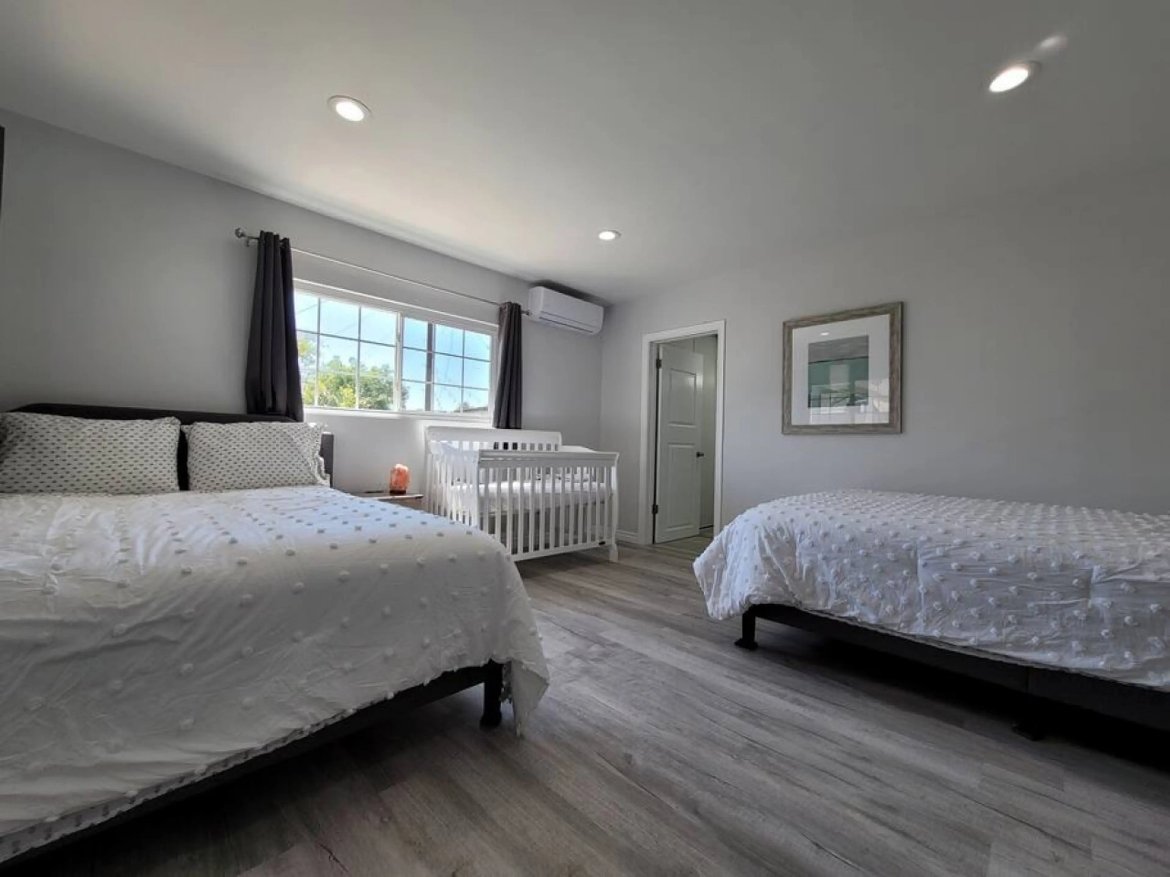 My family of six stayed here for a long weekend to attend Disneyland and events at the Anaheim convention center. We were a 10 min drive to Disneyland, 5-13 min to supermarkets and restaurants. House is newly renovated and has four beautiful bathrooms, lots of beds. The main bedroom has a big smart TV, bed/pillows pretty comfortable. Two comfy couches in living room with big screen TV. Kitchen equipped with tons of spices, salt, pepper and Kerig cups, lots of seating and lots of pots pans, utensils etc. Bathrooms pretty and new, lots of towels and toilet paper. Full size washer dryer. Great ping pong /air hockey table to keep kids entertained. Nice big, fenced backyard with BBQ and outdoor kitchen, tons of comfy outdoor seating and covered patio. Easy to speak to owner, they checked in with us regularly. All in all great place to stay. No complaints.